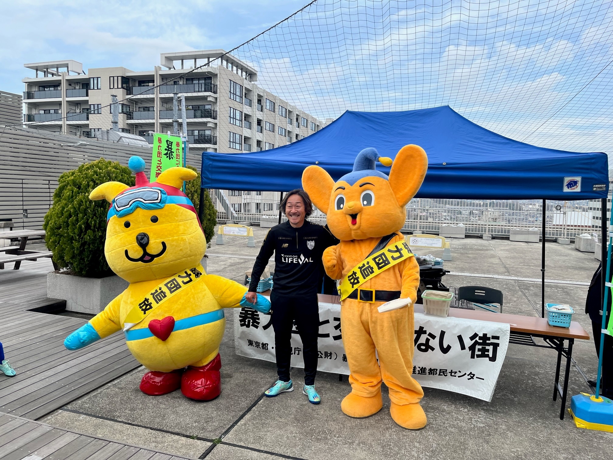 暴力団などの反社会的勢力との関わりを防ぐことを目的とした本イベントでは、「みまもりぃぬ」と「ピーポくん」が特設ブースで啓発品を配布して、「暴力団と交際しない。」ことを広く訴えかけたほか、サッカー元日本代表の石川直宏氏を親子サッカー教室のゲストとして、参加者に夢や目標を持つことの大切さや暴力団追放を呼びかけました。