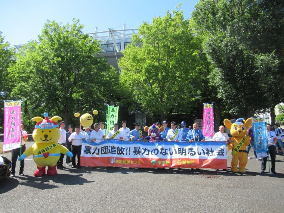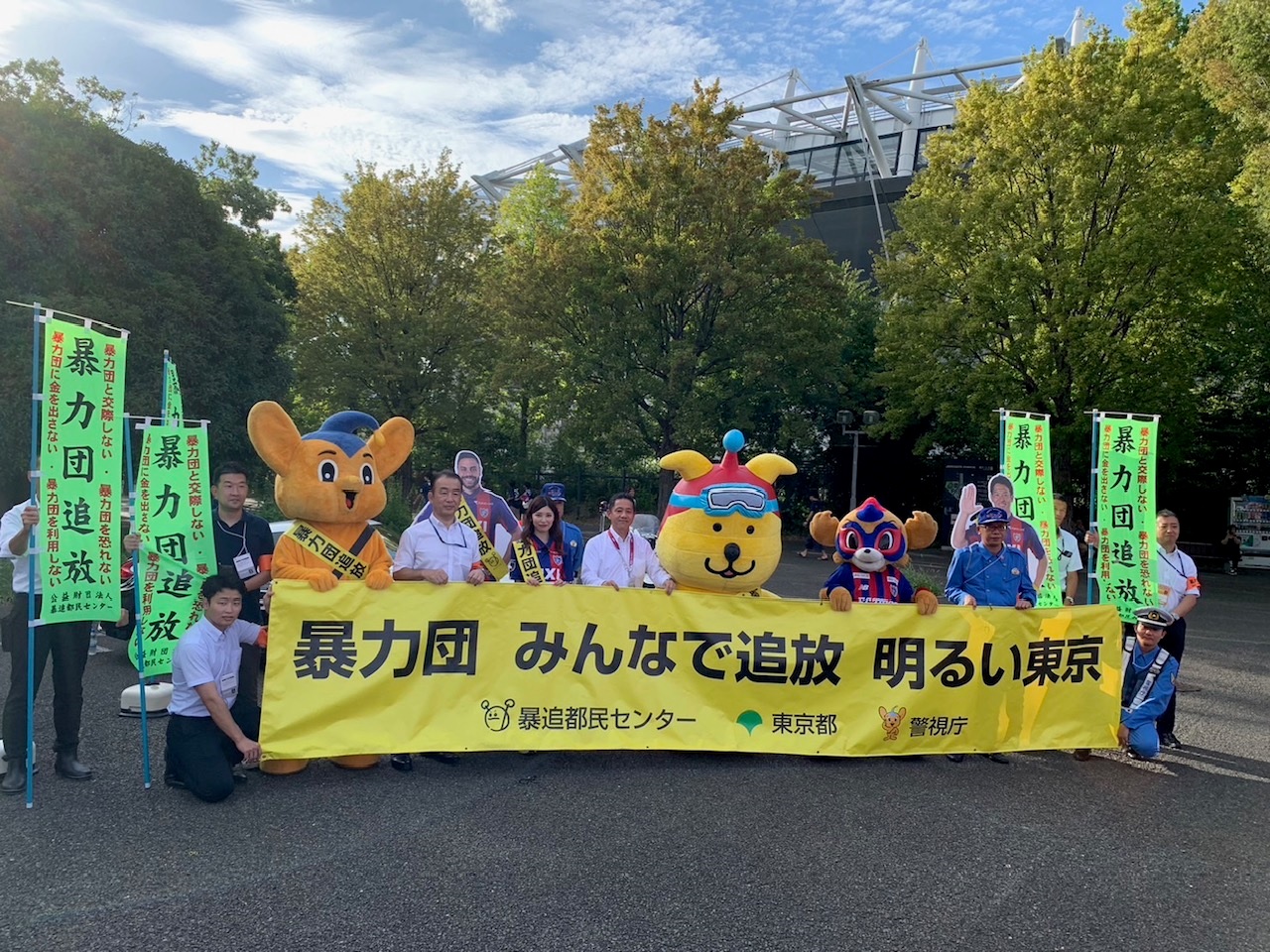 東京都は、東京フットボール株式会社、警視庁及び(公財)暴力団追放運動推進都民センターと連携し、暴力団の存在しない「安心して暮らせる東京」の実現に向けて、味の素スタジアム味パンダ広場において、暴力団排除イベントを行いました。