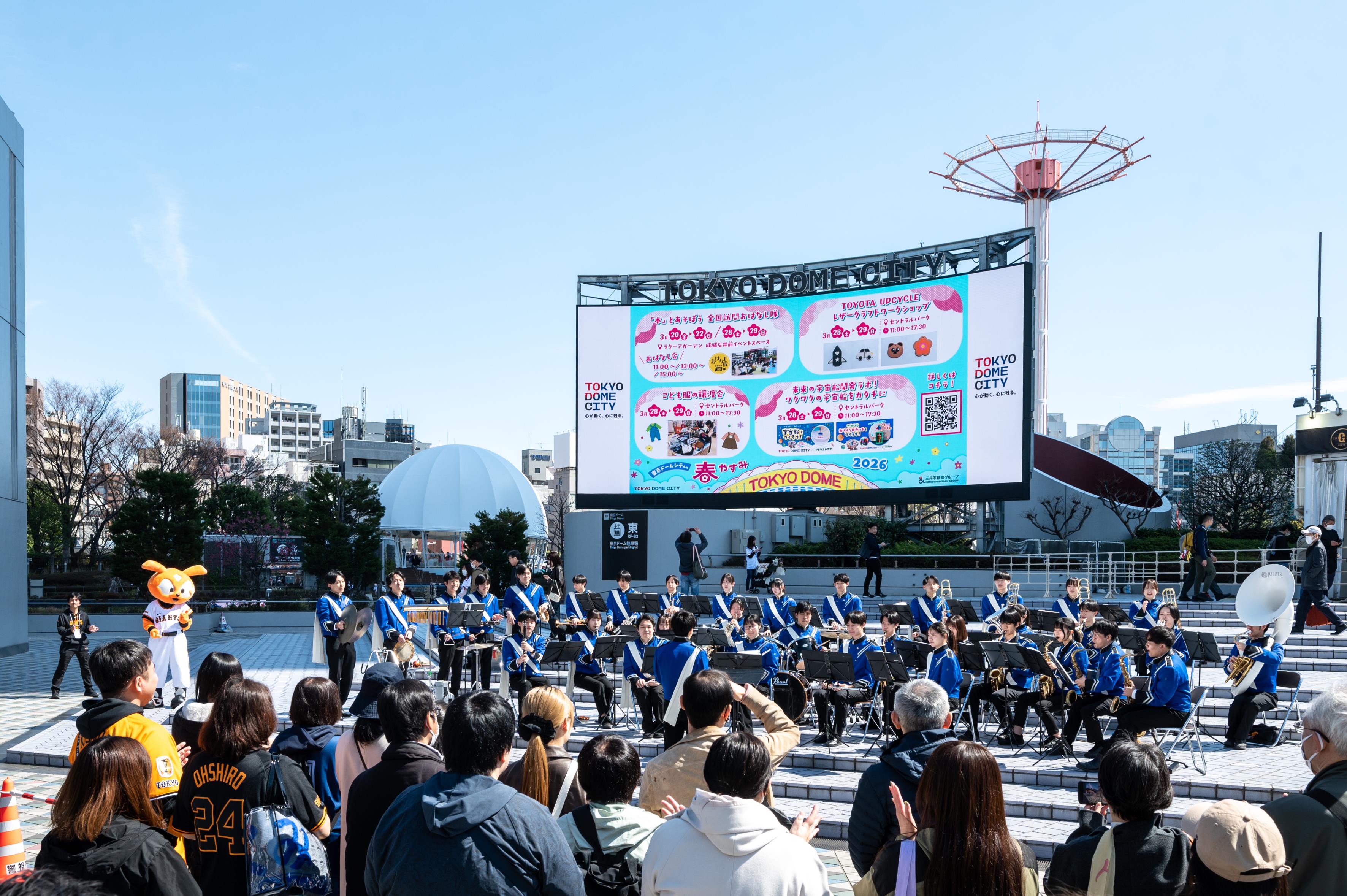 東京都では、読売新聞東京本社、株式会社東京ドーム、警視庁、(公財)暴力団追放運動推進都民センターと連携し、「安全・安心な街東京」を実現するため、東京ドーム22番ゲート前広場において「パーカッション・パフォーマンス・プレイヤーズ(PPP)」「警視庁音楽隊、カラーガード」の賑やかな演奏のもと、暴力団排除イベントを行いました。