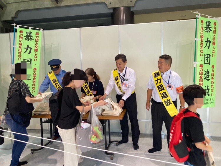 職員が来場者に対し、啓発品を配布して、暴力団排除を呼びかけました