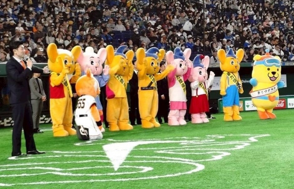 読売ジャイアンツマスコット「ジャビット」、「みまもりぃぬ」、「ピーポくん」たちによるパフォーマンス