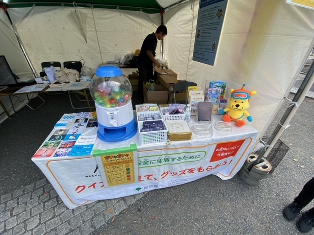 東京都では、在住外国人やその子供に対し安全に関する情報発信を行うため、外国人が多く集まるイベント等にブースを出展し、安全啓発を実施しています。