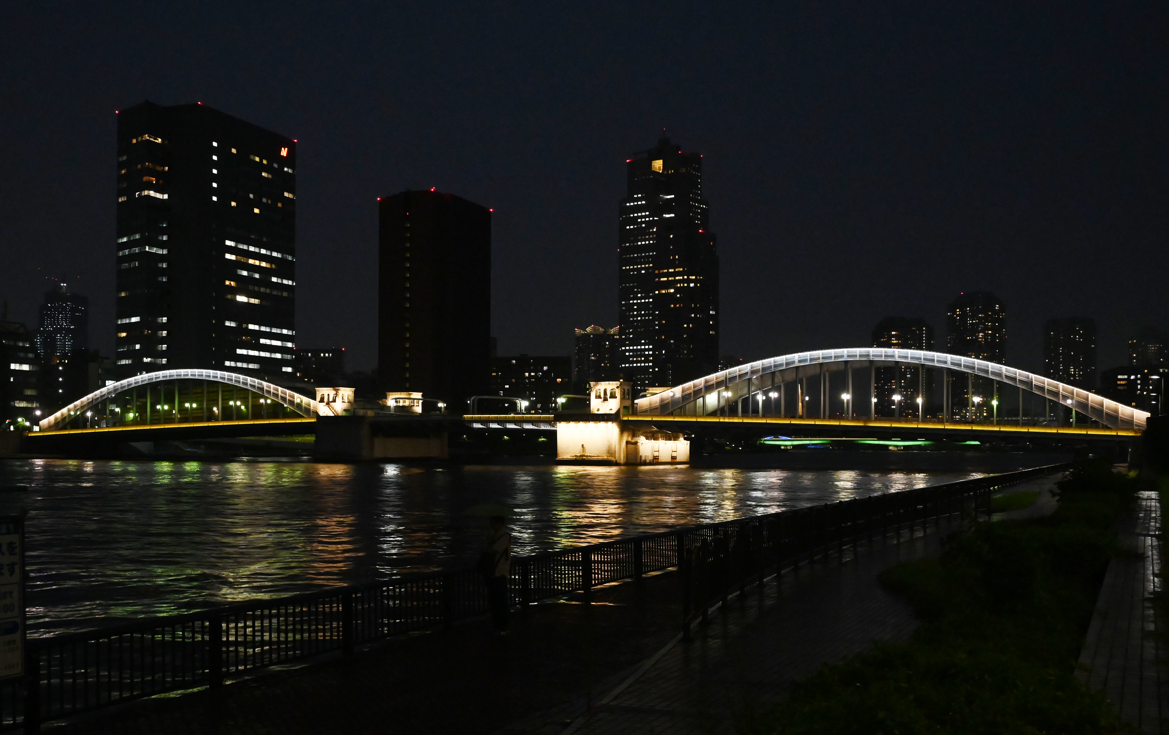 隅田川に架かる橋(永代橋、勝鬨橋、築地大橋)ライトアップ