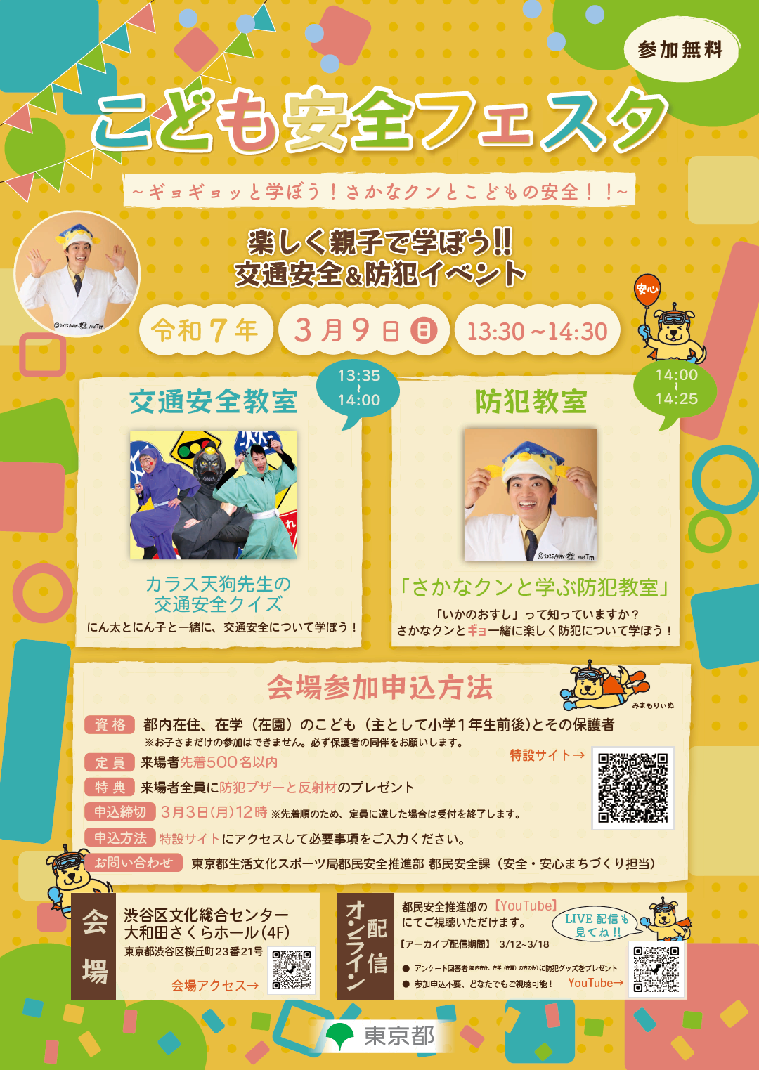 都は、新入生や進級した小学生が安全安心に学校生活が送れるよう、交通安全や犯罪被害に遭わないための約束「いかのおすし」などを楽しく学ぶイベントを行います。