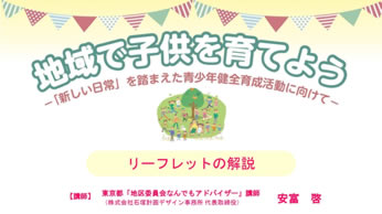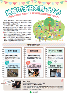 現在、各地域では、次代を担う子供たちの健全育成の大切さを感じながらも、実施に向けて苦慮されていることと思います。この状況を踏まえ、今後、地域における活動の輪が様々なかたちで広がることを願い、「新しい日常」における取組の工夫をリーフレットにまとめましたので、参考としていただければ幸いです。