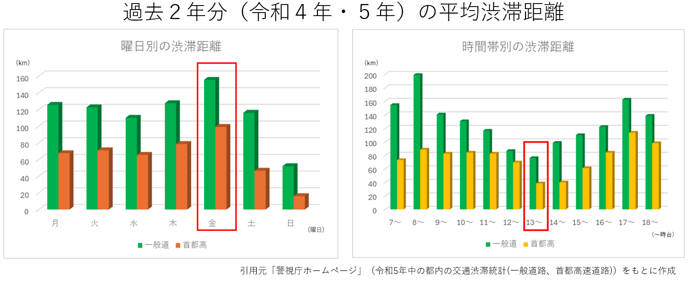 時間別では、13時台は比較的渋滞が少ない傾向です。