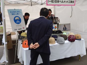 自転車用ヘルメットの現物の展示、チラシやポスターによる啓発