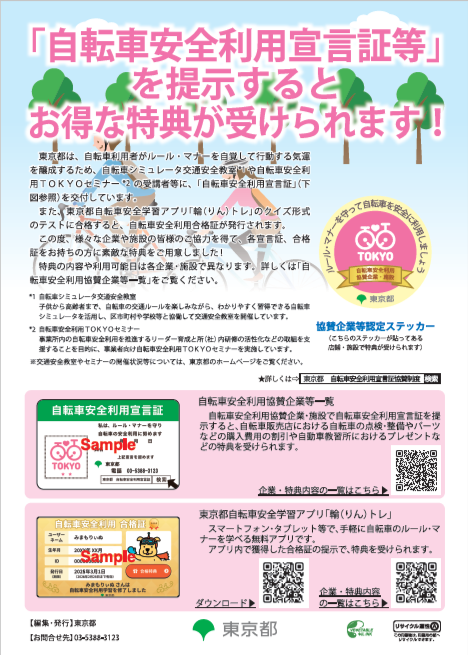 「自転車安全利用宣言証」等協賛制度 PDF[1.8MB]